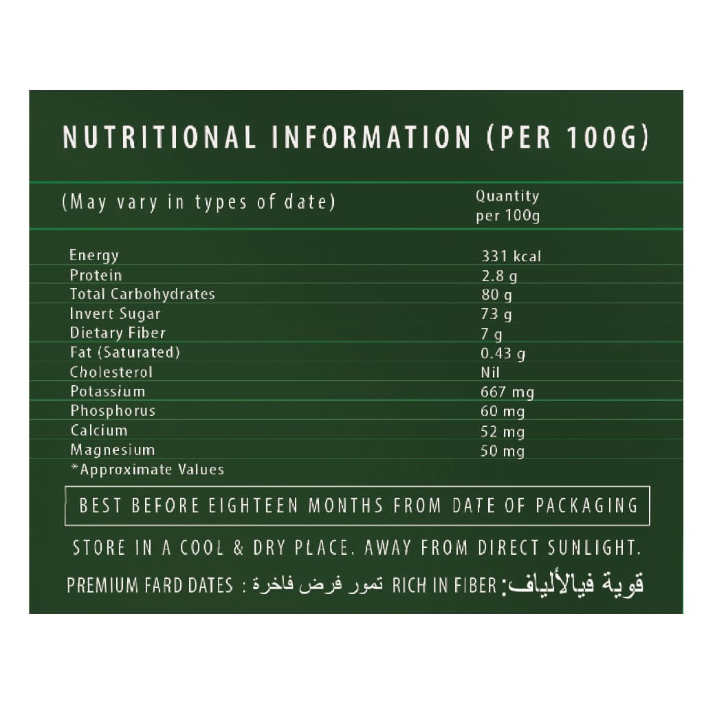 Fard Dates are one of the popular & most consumed dates in India. It is grown mainly in the eastern region and is characterized by a unique natural, glossy, waxy layer covering its smooth surface, besides, to the strong, fiber structure which gives it a lesser sweet taste.