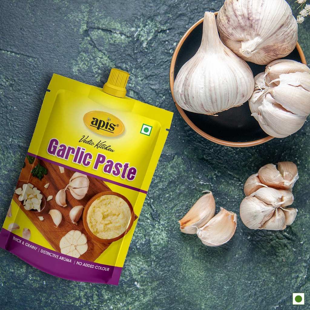 Garlic Paste is part of the essentials of cooking pastes that enriches the taste of any homemade dish it fills. Apis Garlic Paste comes in re-sealable pouches with twist-off caps to maintain the aroma and freshness. Not only does it give food a good aroma, but it also helps with digestion. also used for marinating.